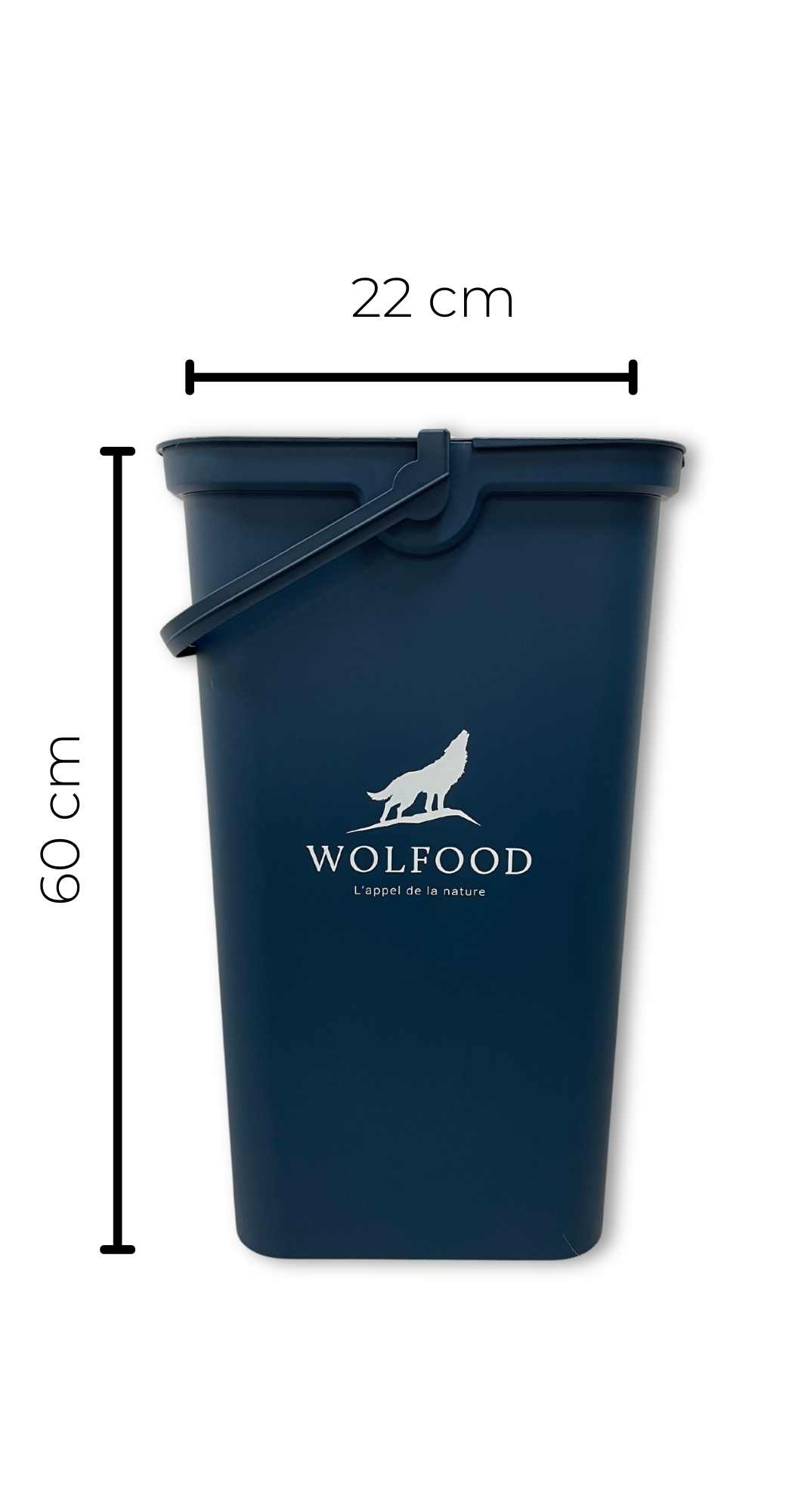 Optimisez le stockage des repas de vos fidèles compagnons avec le conteneur à croquettes Wolfood de 40 litres.